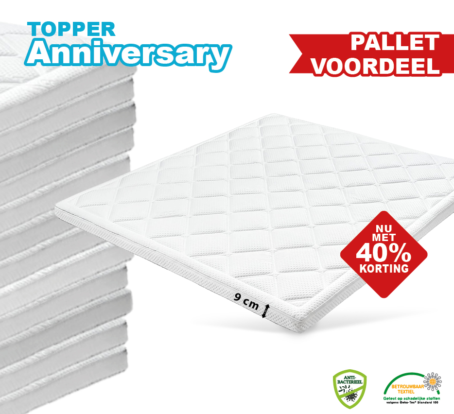 Le segment supérieur des matelas à plateau supérieur. Anniversery est le matelas à plateau supérieur avec un confort de couchage ultime. Mousse froide HR 60 dans une housse lavable en tencell de luxe.