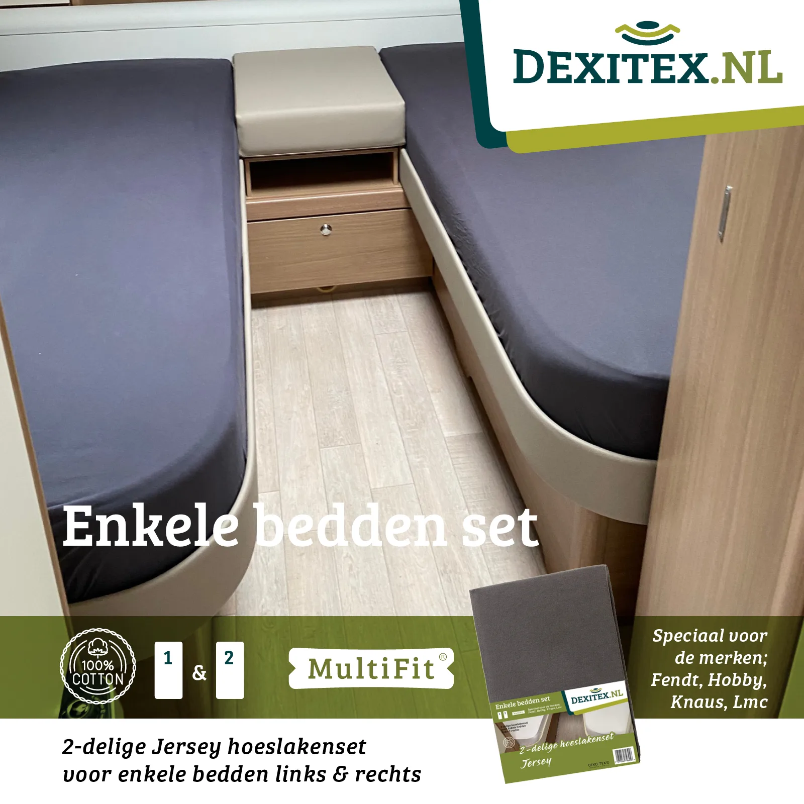 Ensemble complet de draps-housses en 2 parties (spécialement pour les lits simples de caravane ou de camping-car).MultiFit®.