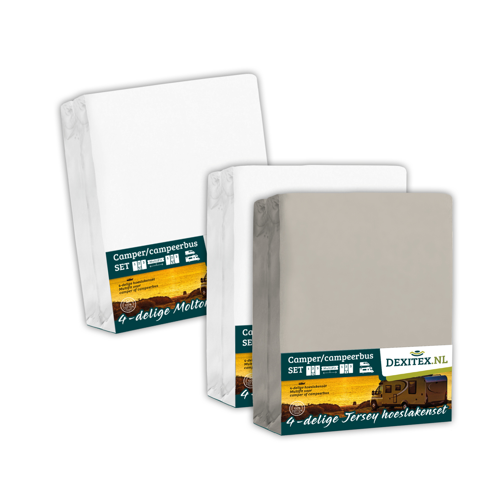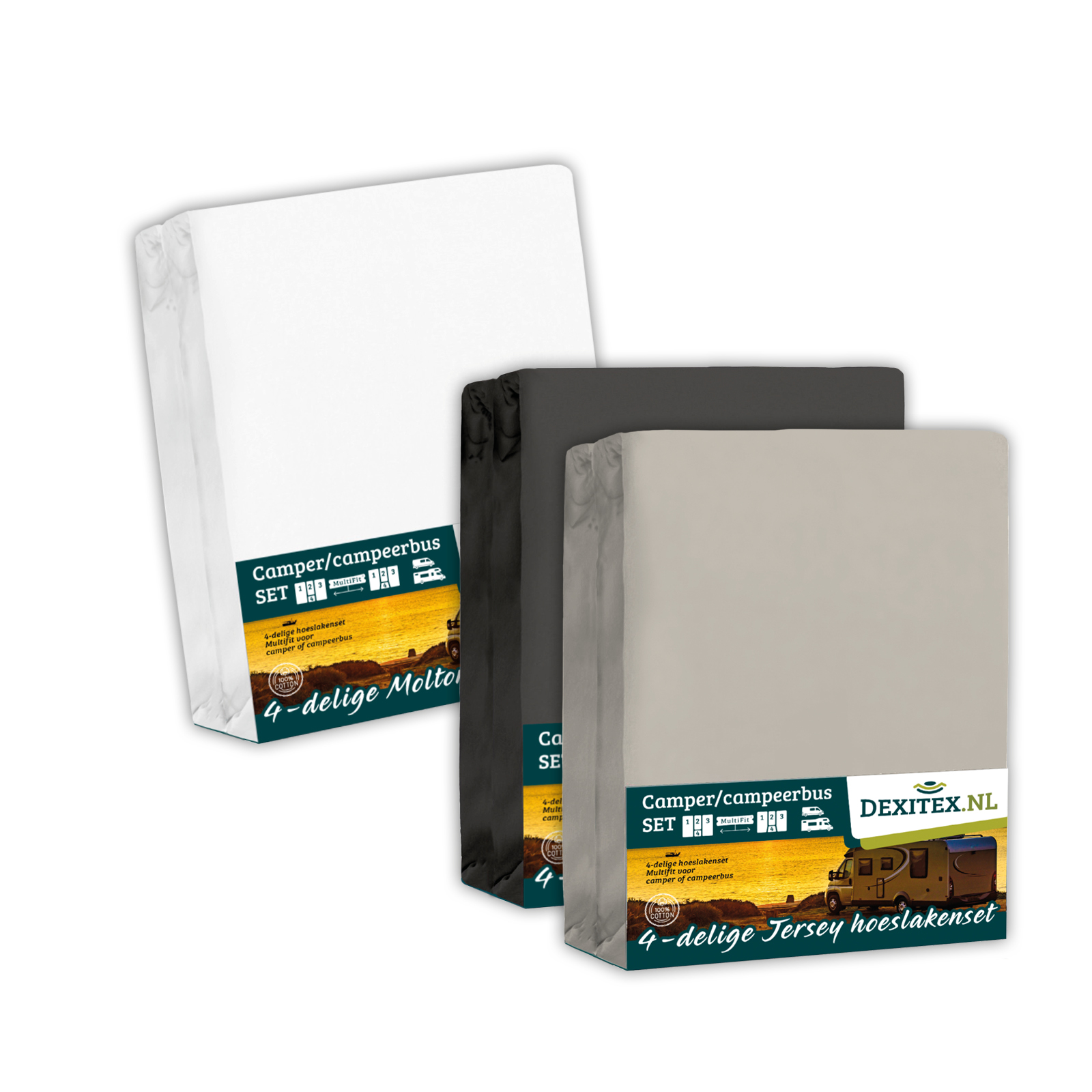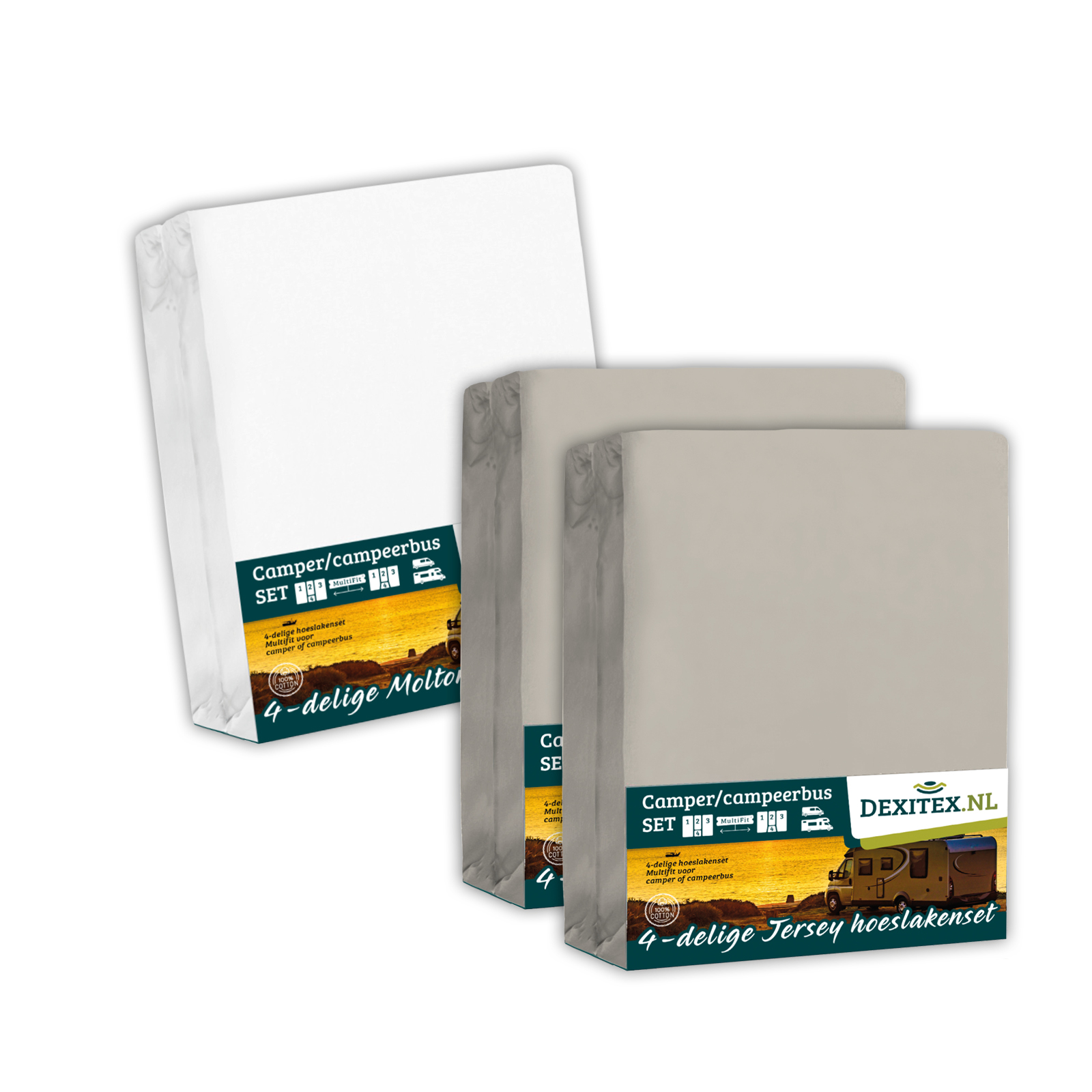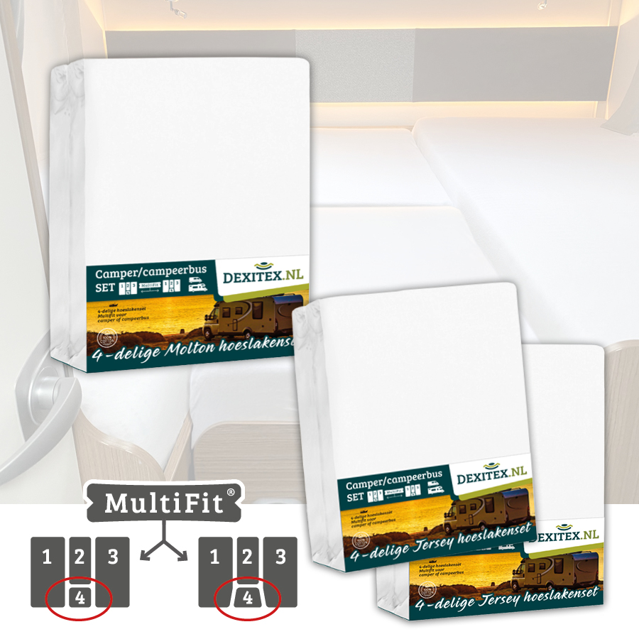 Ce set de draps-housses est spécialement conçu pour les matelas en 4 parties dans les camping-cars ou les caravanes. Le set contient 4 draps-housses en jersey. Un pour le matelas gauche, un pour le matelas droit et deux draps spécialement conçus pour la partie centrale. Ainsi, tous les matelas sont parfaitement et proprement installés.