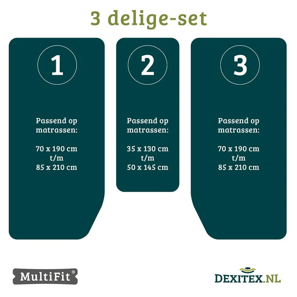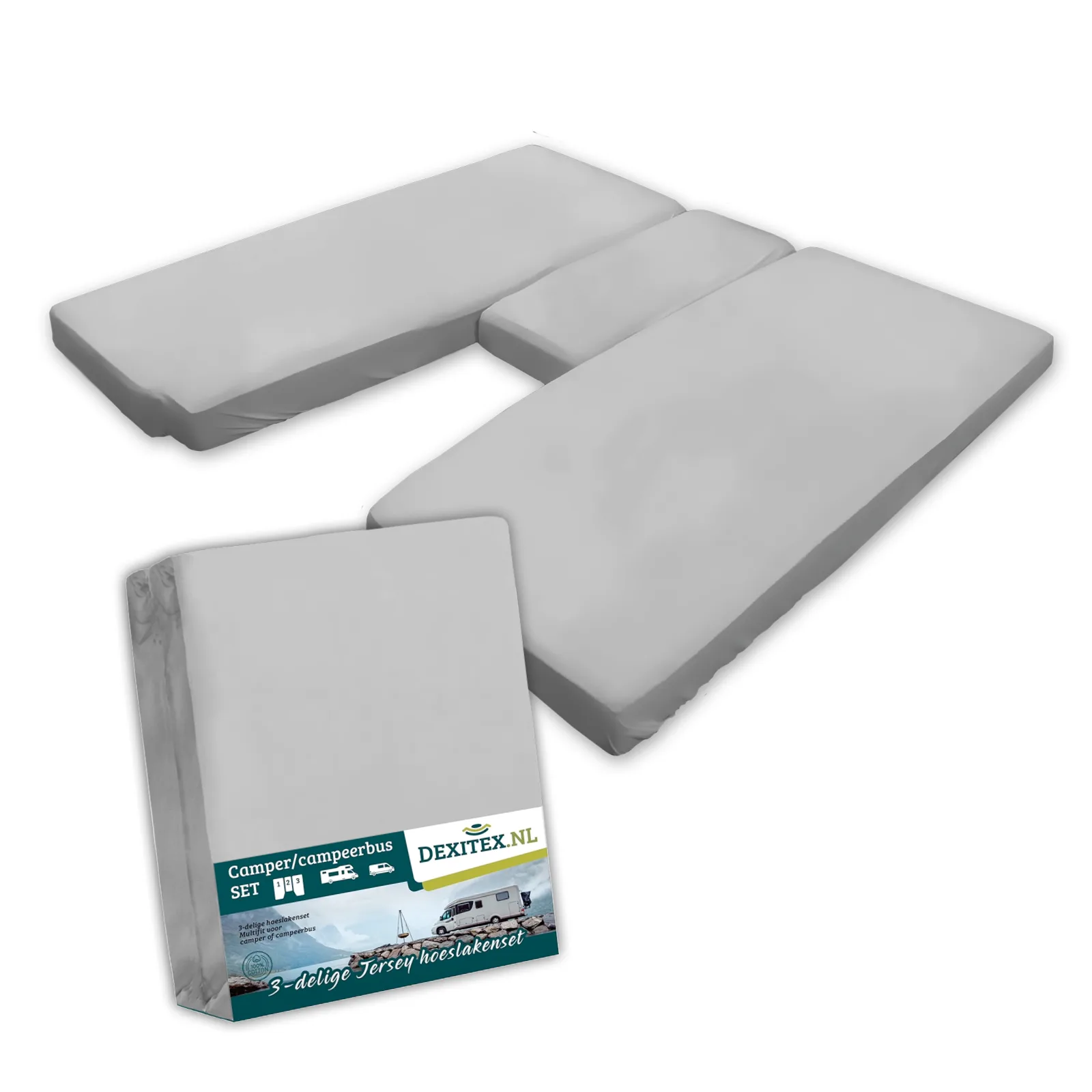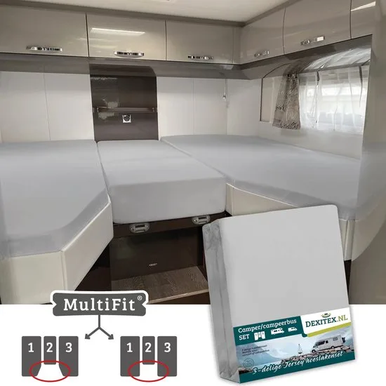 Ce set de draps-housses est spécialement conçu pour les matelas en 3 parties dans les camping-cars ou les caravanes. Le set contient 3 draps-housses en jersey de qualité extra épaisse. Un pour le matelas de gauche, un pour le matelas de droite et un spécialement conçu pour le matelas du milieu. Ainsi, les 3 matelas sont parfaitement et proprement installés.