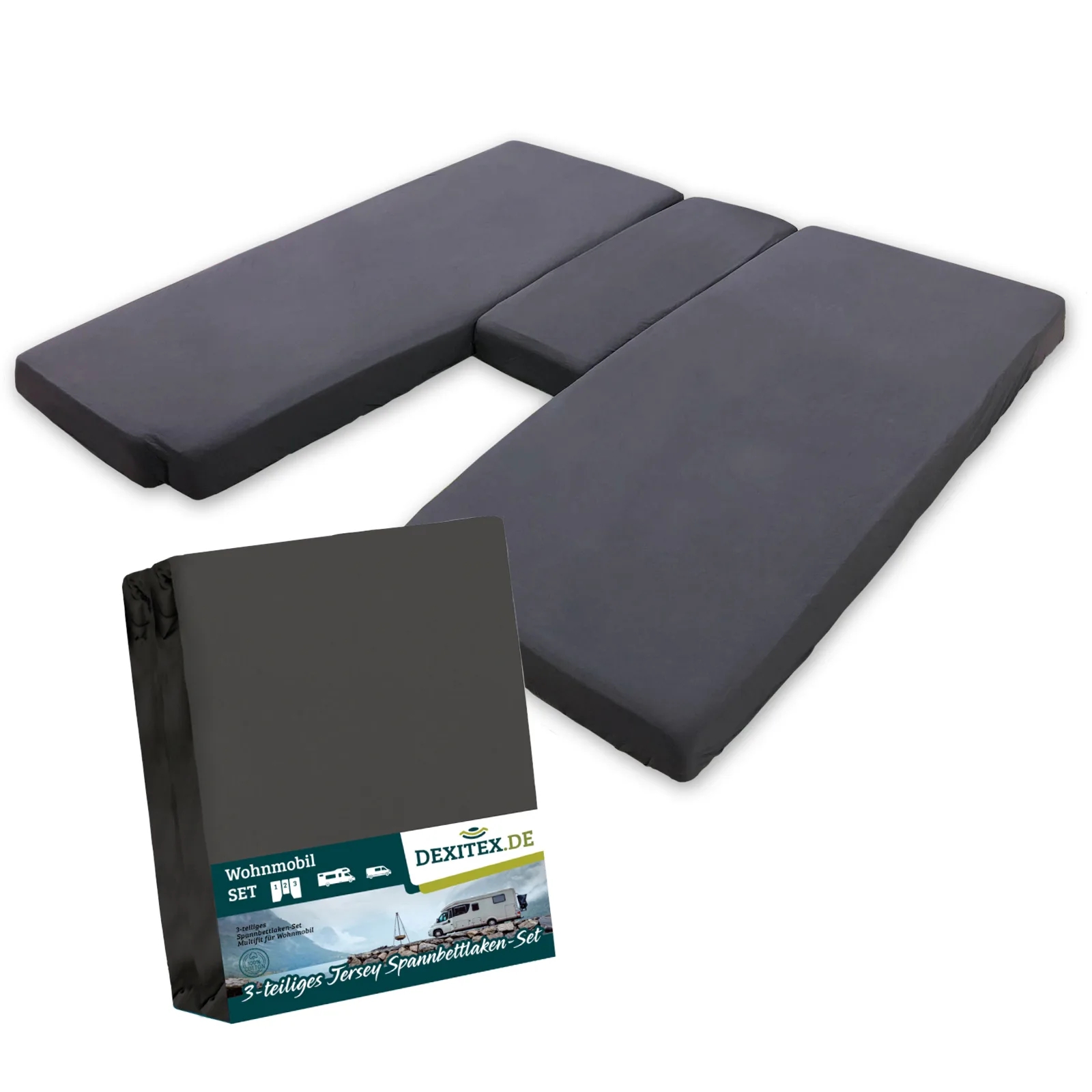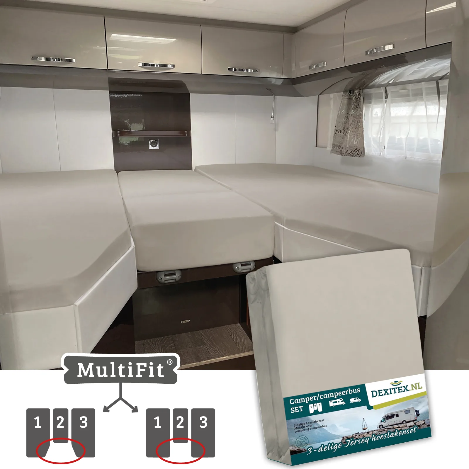 Ensemble complet de 3 pièces de draps-housses (spécialement pour l’aménagement des caravanes ou des camping-cars).MultiFit®.
