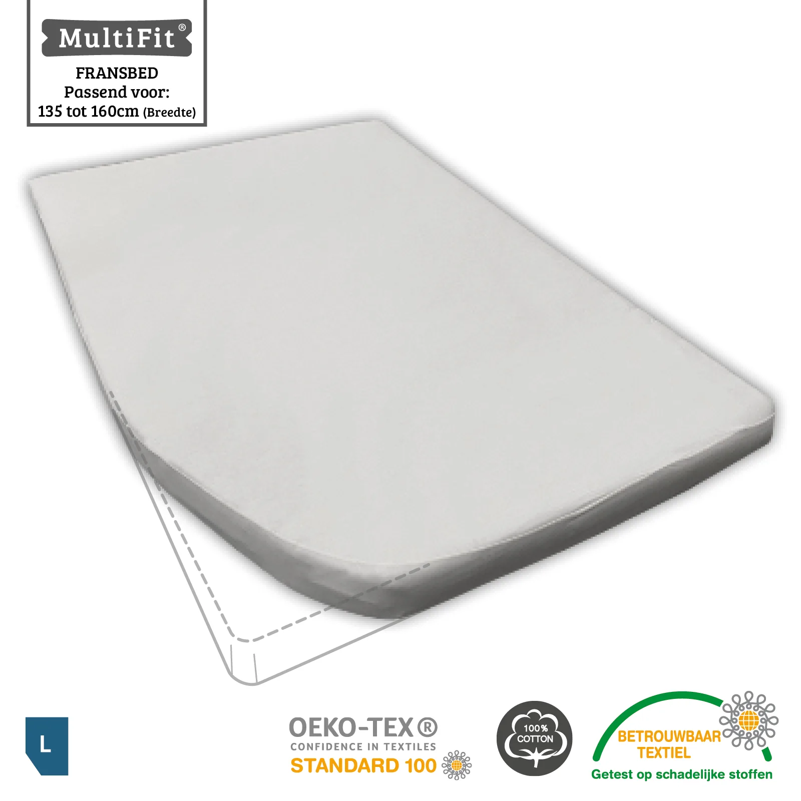 Protège-matelas Molton et drap-housse Jersey.MultiFit®largeur de 130 à 160 cm, longueur ± 200 cm(spécialement pour matelas de lit français avec coin biseauté GAUCHE).