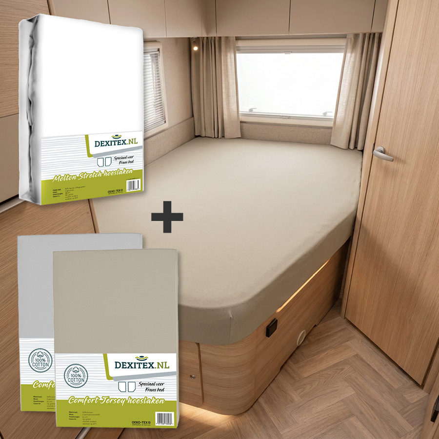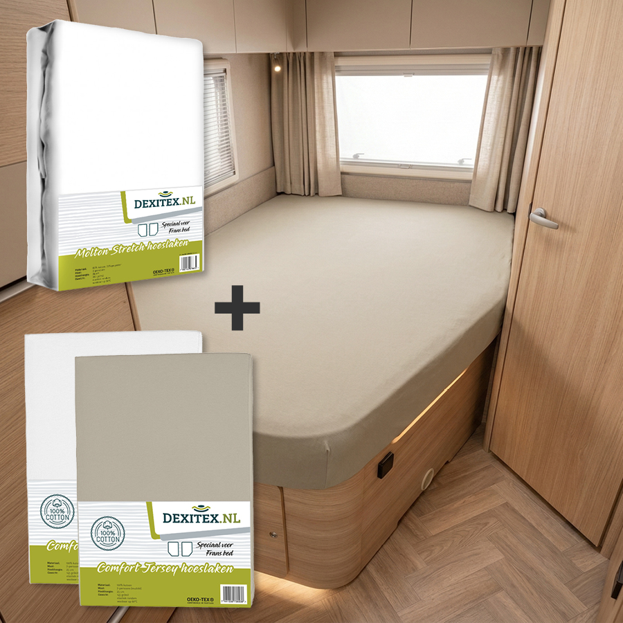Cet ensemble de 3 pièces comprend un protège-matelas en flanelle et 2 draps-housses Jersey. Les housses de cet ensemble sont spécialement conçues pour les matelas des lits français, c’est-à-dire que toutes les housses ont un coin biseauté à l’extrémité du pied pour un ajustement parfait. Vous dormirez donc toujours bien dans la caravane, le camping-car ou sur le bateau. Agréables et flexibles, elles s’adaptent toujours !