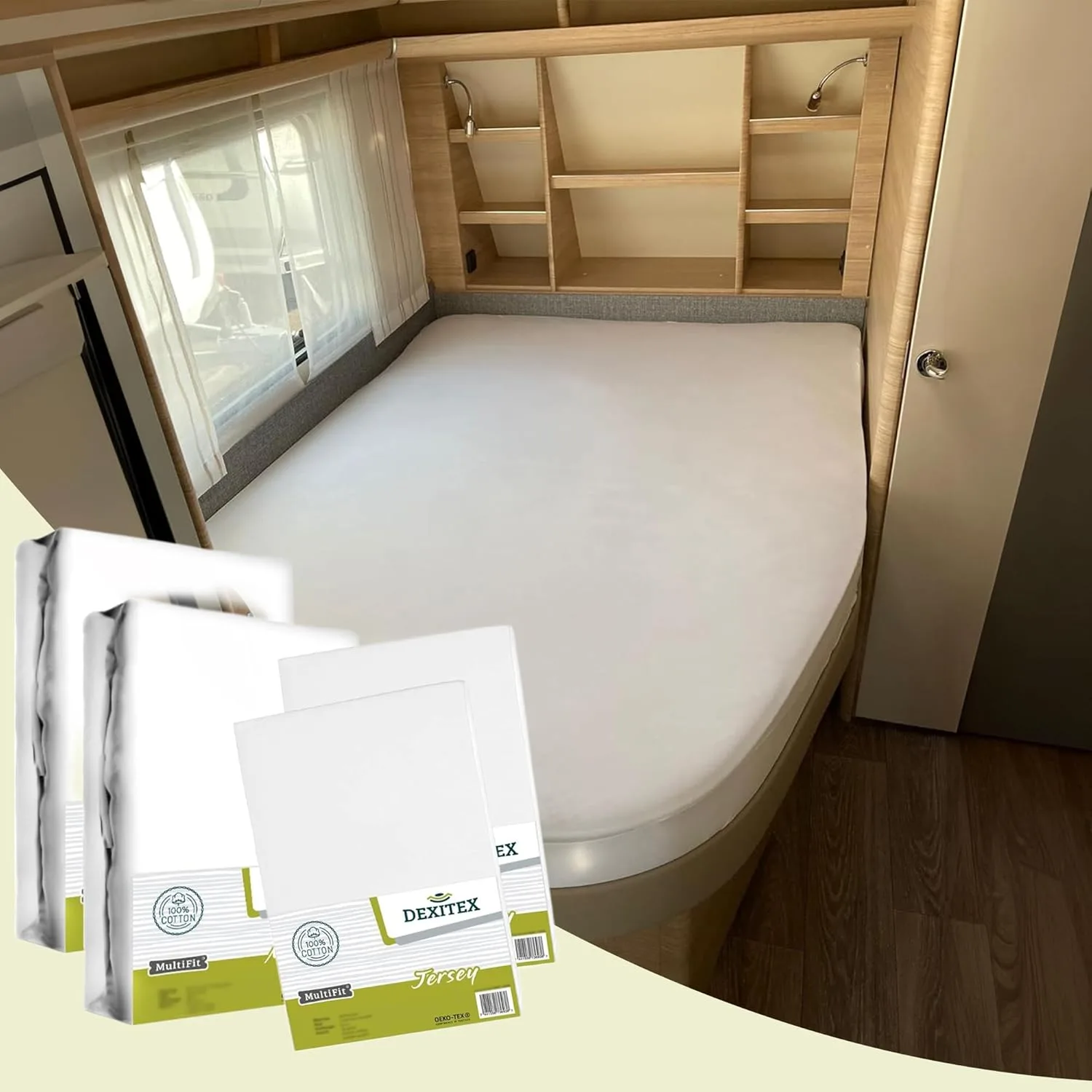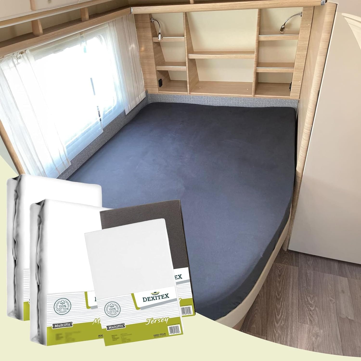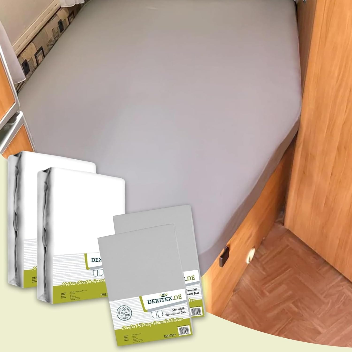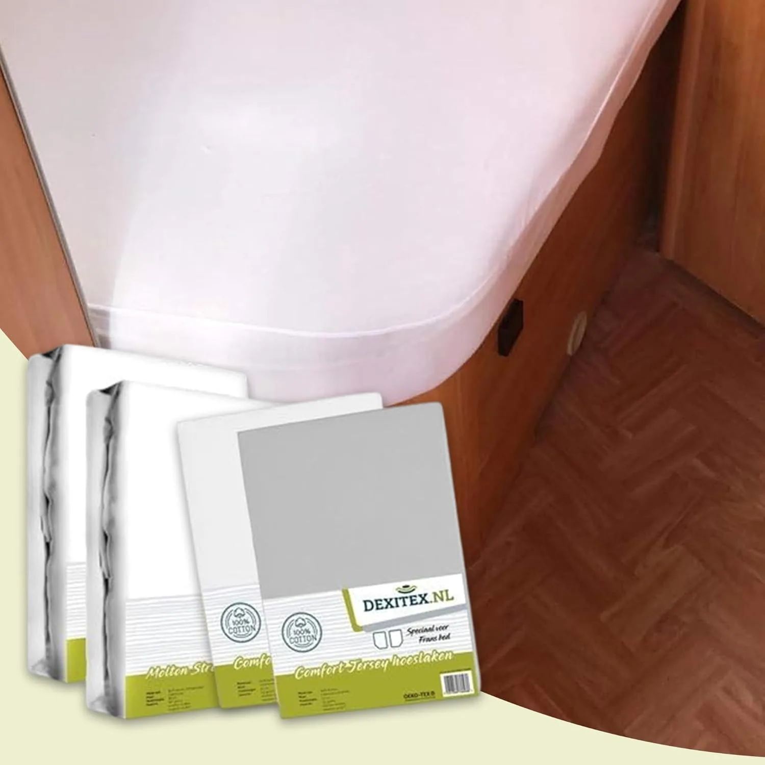 Cet ensemble de 4 pièces se compose de 2 protège-matelas en flanelle et de 2 draps-housses Jersey. Les housses de cet ensemble sont spécialement conçues pour les matelas des lits français, c’est-à-dire que toutes les housses ont un coin biseauté à l’extrémité du pied pour un ajustement parfait. Vous dormirez donc toujours bien dans la caravane, le camping-car ou sur le bateau. Agréables et flexibles, elles s’adaptent toujours !